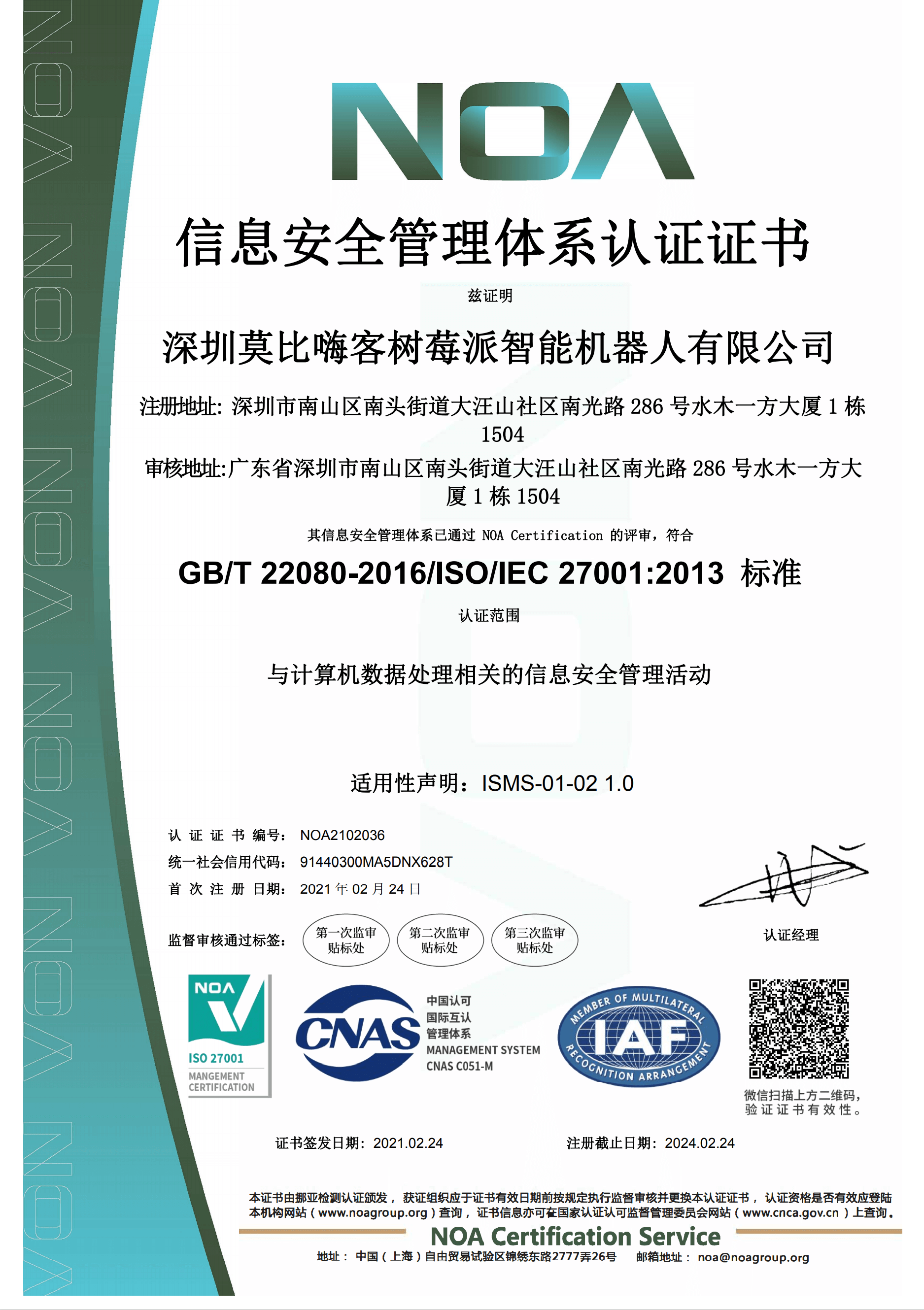 荣获27001和9001认证证书