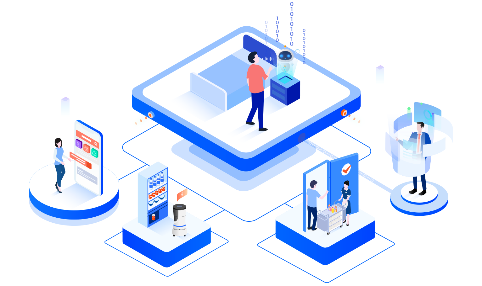 智能语音客服7x24小时在线接待,问题解决率高达90%,送物机器人全时段值守,用科技解放人力,减少人工成本