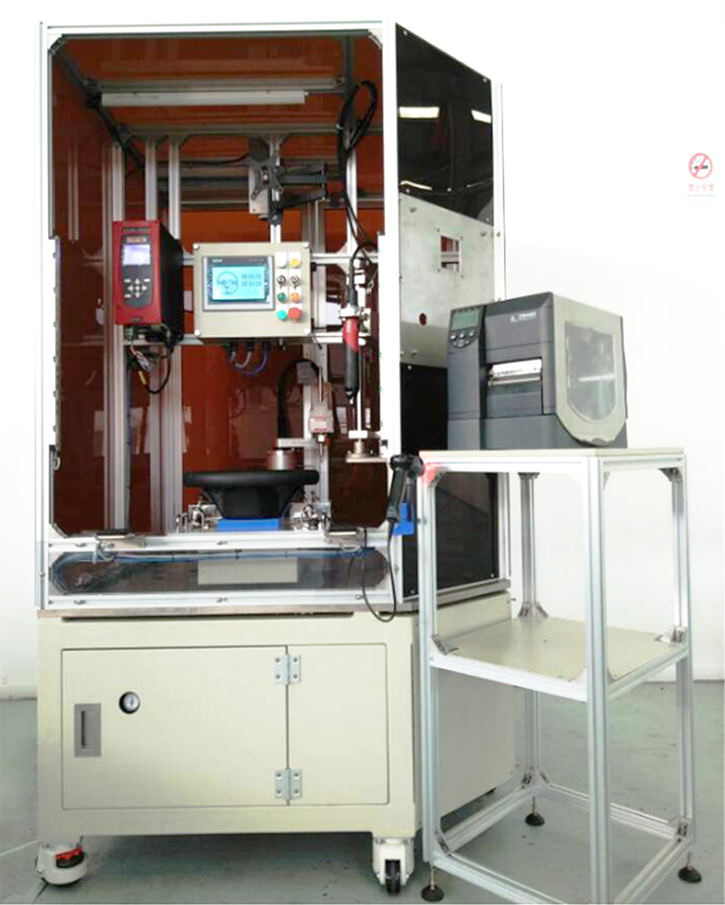 设备功能:该设备实现双工位作业,工位1现有车型开关螺丝的人工拧紧,完成工位1自动旋转至工位2,自动对开关进行按键导通检查,然后进行影像检测,全部检查合格后打印产品ID条码。