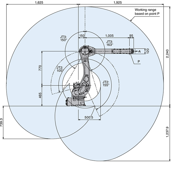 水平伸展距离 1,925 mm