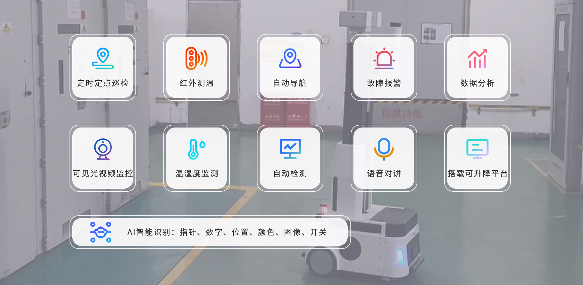 机房巡检机器人是一个实现了自主移动,自我管理,自动避障,自动充电的智能机器人。机房巡检机器人可以实现连续不间断的巡视巡检作业,是一个通过智能机器人对机房内设备状态进行自动化巡检的解决方案。机器人通过可升降式平台搭载可见光相机,灵活调动相机高度,实现不同角度的巡检检测,提高巡检效率。