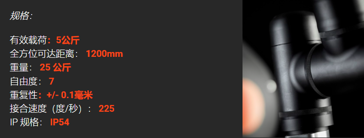 快速灵活的工业协作式机器人,工作范围为 1200 mm,有效载荷为 5 kg。通过我们特殊直观的 Kassow 用户界面实现简单编程。