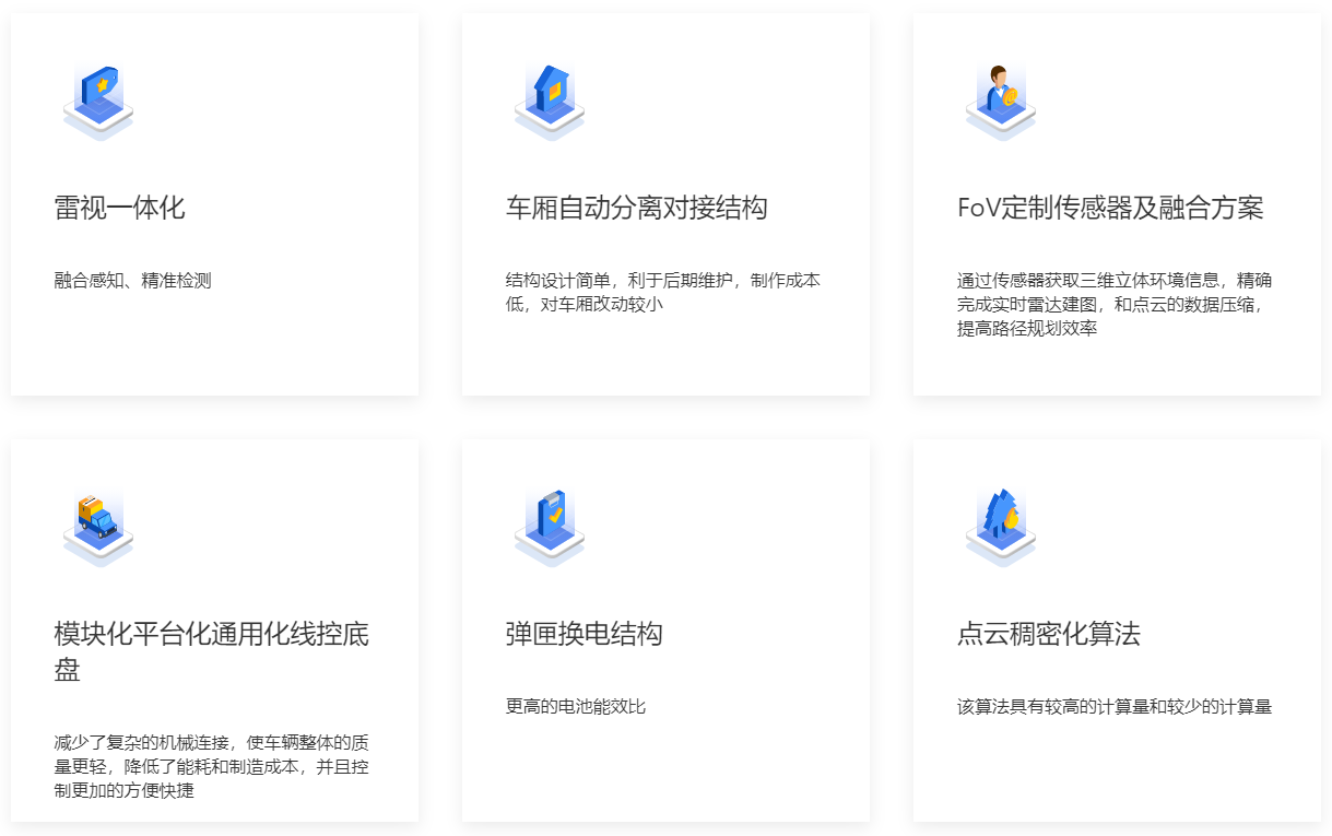 翊珩科技致力于将产品平台化、通用化、模块化,以快速精准全面的从工业设计、算法及电子电气功能、机械及整车制造、车管平台多个维度为客户定制满足实际应用需求的无人车
