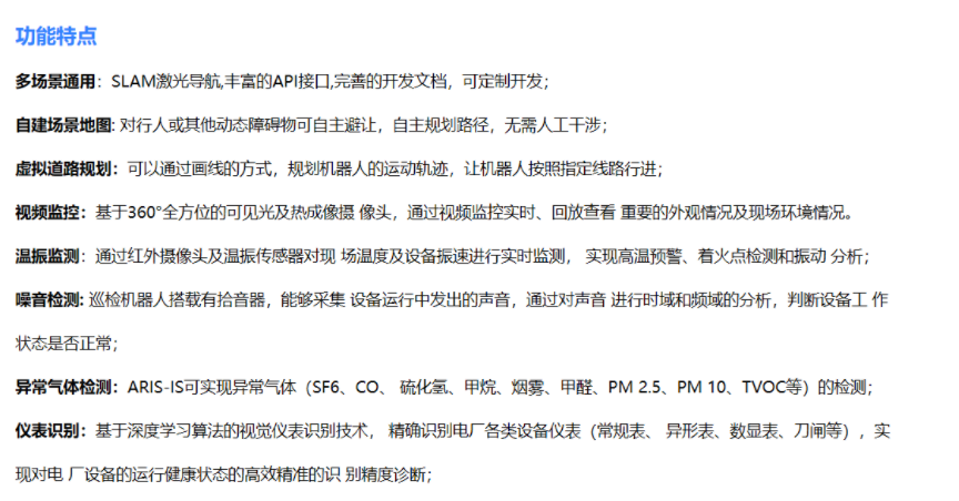 巡检机器人可实现大范围场景下的自主导航能力;同时采用六自由度协作机械臂搭载摄像头,可深入各个复杂角落采集数据,适用于设备厂房内关键主机及辅机的运维巡检。