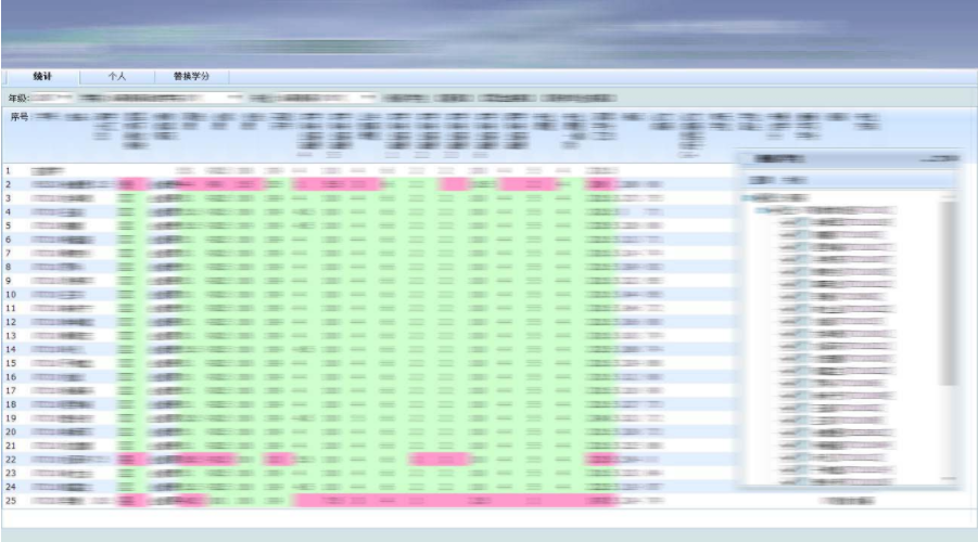 状态统计,能够统计出各课目明细,以供判断学生是否符合毕业条件。
