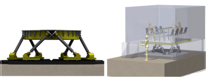 采用高响应电动驱动装置和高精度反馈控制,具有试验级的背景噪声、谐波失真度、不均匀度、交叉耦合度控制;是高端地震体验装置的理想平台。