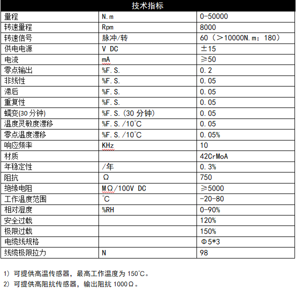 ·不需要反复调零即可连续传递正反扭矩信号·没有集流环等磨损件、可高转速长时间运行·外壳与旋转盘之间无轴承、可适应长时间高速运转、可以传递静止/旋转/静态/动态扭矩信号