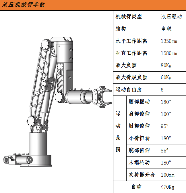 优宝特力反馈主从遥操作液压机械臂 80KG级