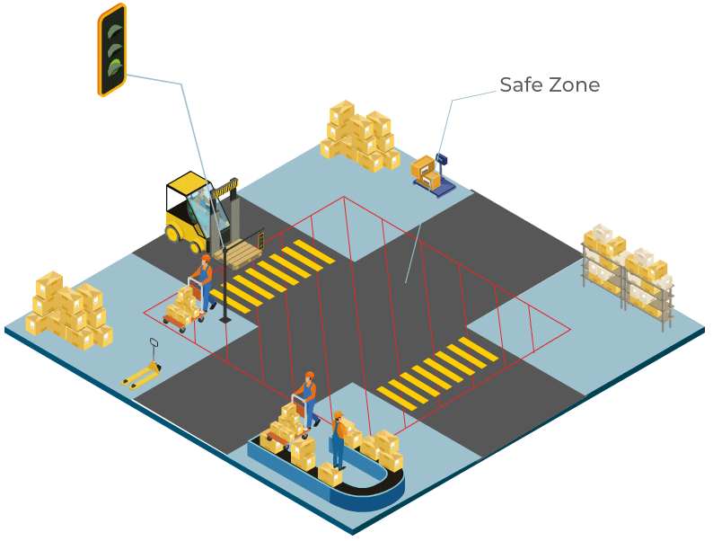 分区系统允许您管理特定区域的叉车活动。例如,在进入危险工作区时,可以设置车辆的速度限制。由于在车辆上和大门附近应用了电子设备,因此可以准备活动以激活标志并管理对某些区域的访问。