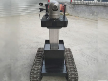 履带式侦察巡检机器人是由机器人本体、车载传感器、手持遥控终端、集成管 控云平台组成。用于火场侦察、危险环境侦察、救援探测。产品采用履带底盘,机动灵活, 车体刚性好,爬坡、爬楼梯,越野能力强;搭载多个种类的高灵敏度传感器,可实现自主避 障、自主导航、自动报警。