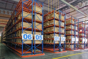 窄巷式货架的堆垛通道宽度稍大于托盘货物的宽度,使高密度存储需求得以实现,同时继承了横梁货架的优点,所收纳的物料具备任意的可选性,叉车可以随时存取任一托盘货物。