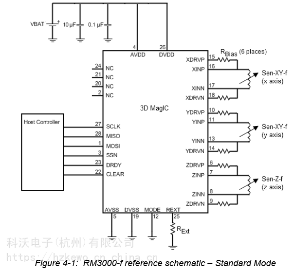 12927有两种工作模式,通过PIN12引脚控制,MODE引脚接地为标准模式,接VDD则为传统模式(与PNI11096兼容)。