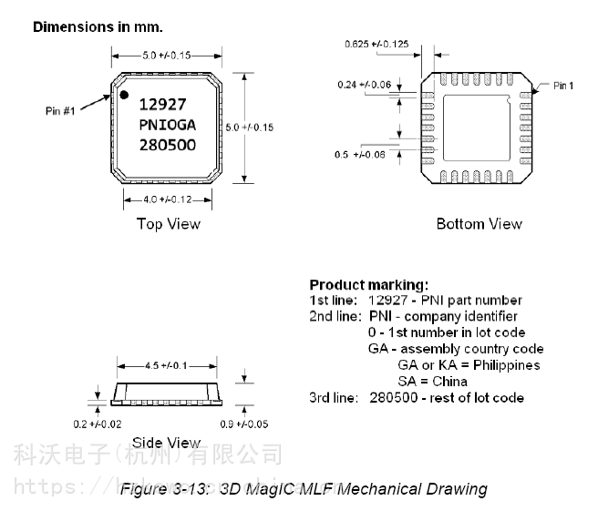 PNI13156是美国PNI公司推出的新的地磁传感器驱动芯片Magi2C,主要是替换之前生产的PNI12927和更久的型号PNI11096. 当然他们都是需要配合PNI公司的地磁传感器PNI13104和PNI13101使用的,每个驱动芯片13156可接三颗传感器,PNI13104,PNI13101中任何组合都可以。