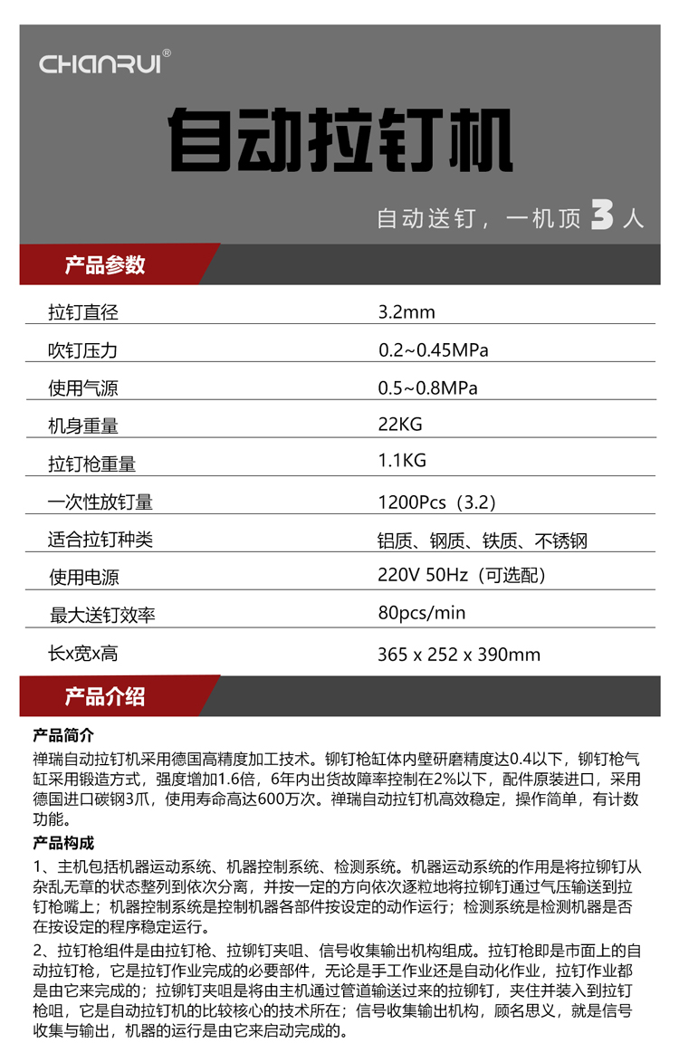 禅瑞自动拉钉机智能上料 适用于钣金件紧固铆接