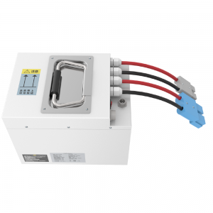3、精确的电池剩余电量:根据客户需求可以显示电量和不显示电量,由于磷酸铁锂的电压特性曲线,采用采集电压的方法测算电池的SOC将非常不准。AGV磷酸铁锂电池采用采用软件“库仑积分+电压校准”的方法,精确测算电池的剩余电量,并以0~5VDC模拟电压输出,线性对应电池0%~100%的剩余电量,方便了上位机对电池电量的取值要求。