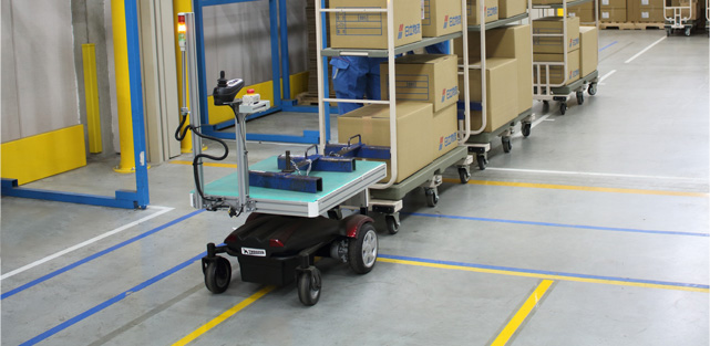 协同搬运机器人“THOUZER”是搬运货物的机器人。