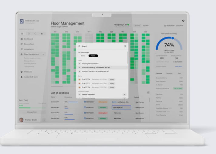 使用我们的机器人在环境中收集的无数数据点,信息在硬件上进行处理并立即发送到云端。提供前所未有的实时仓库洞察。