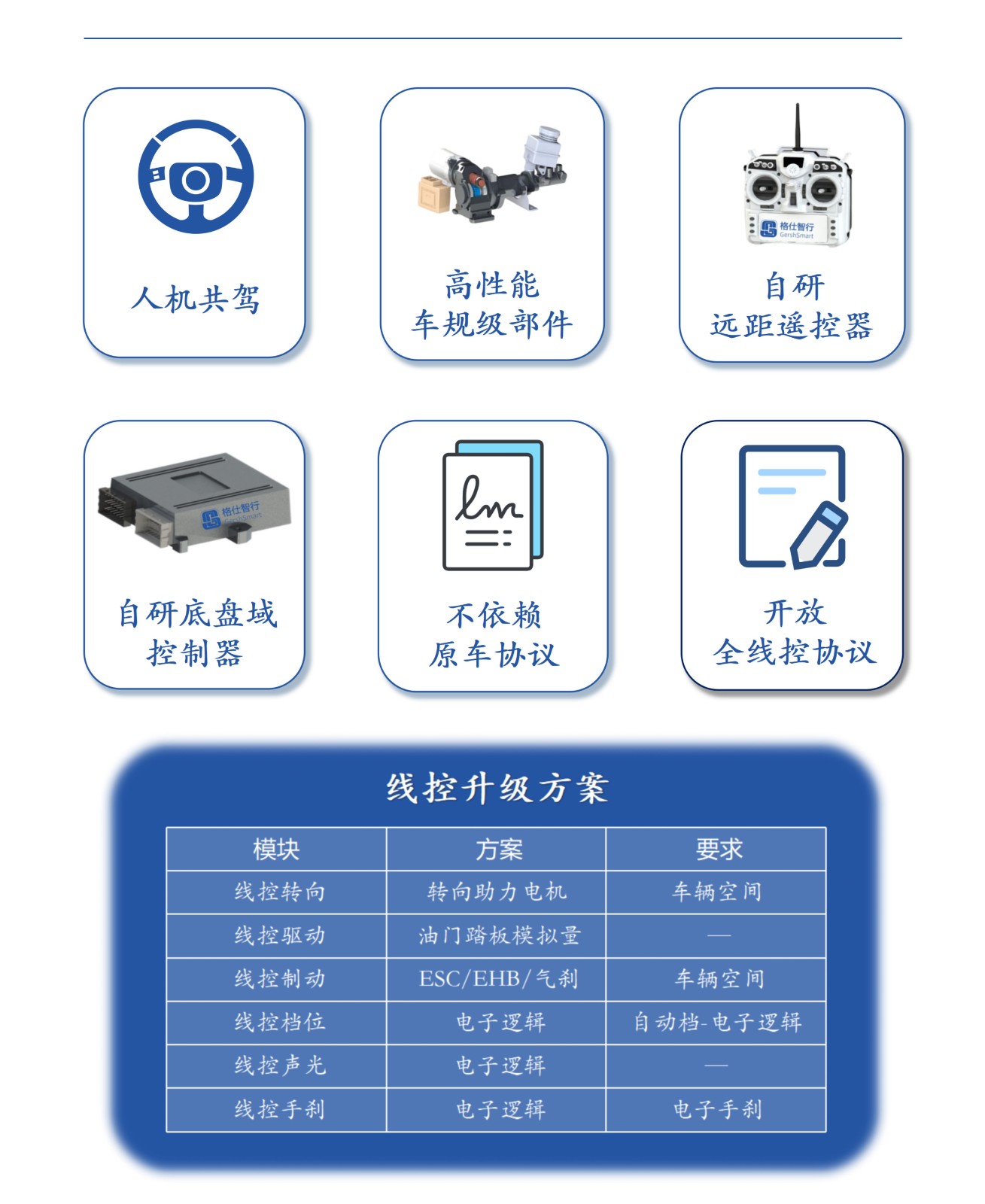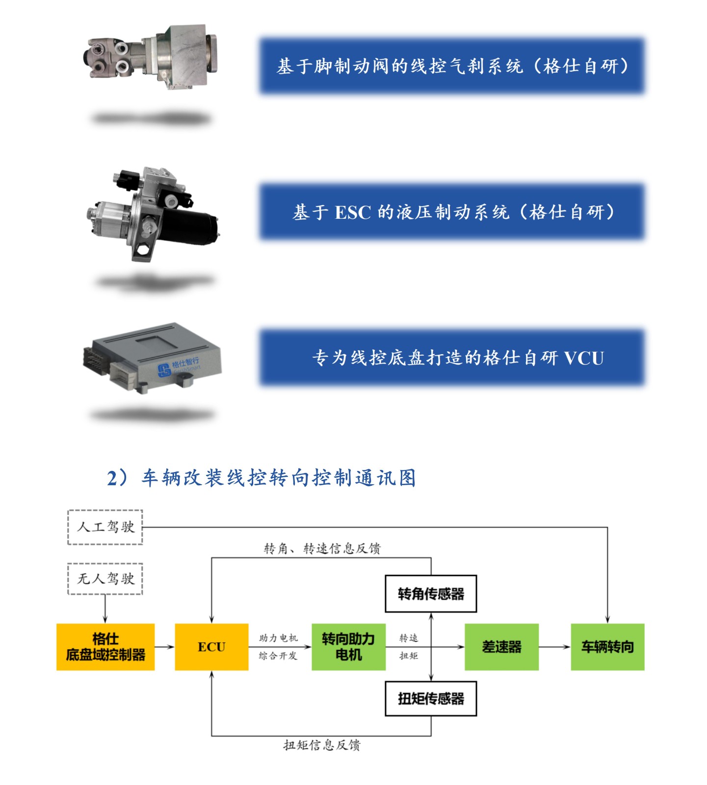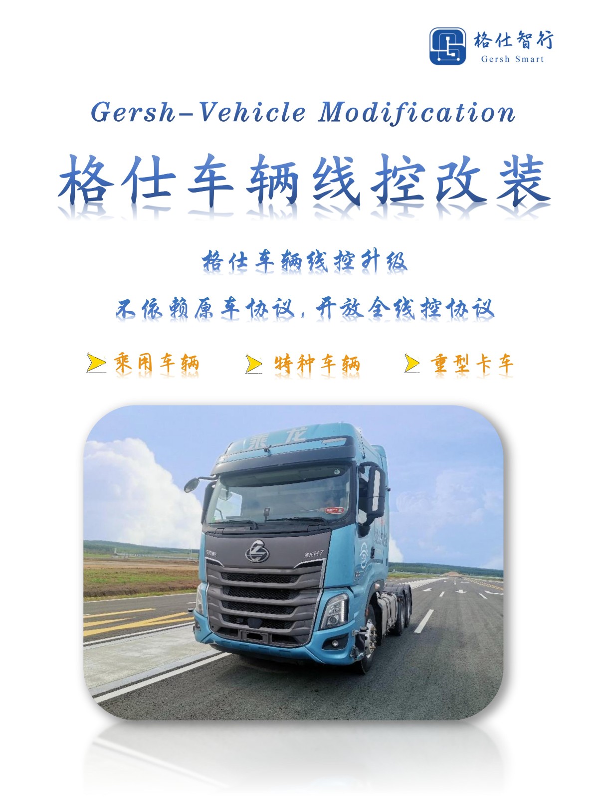 格仕智行车辆线控改制乘用车、低速传统车、商用车重卡线控底盘