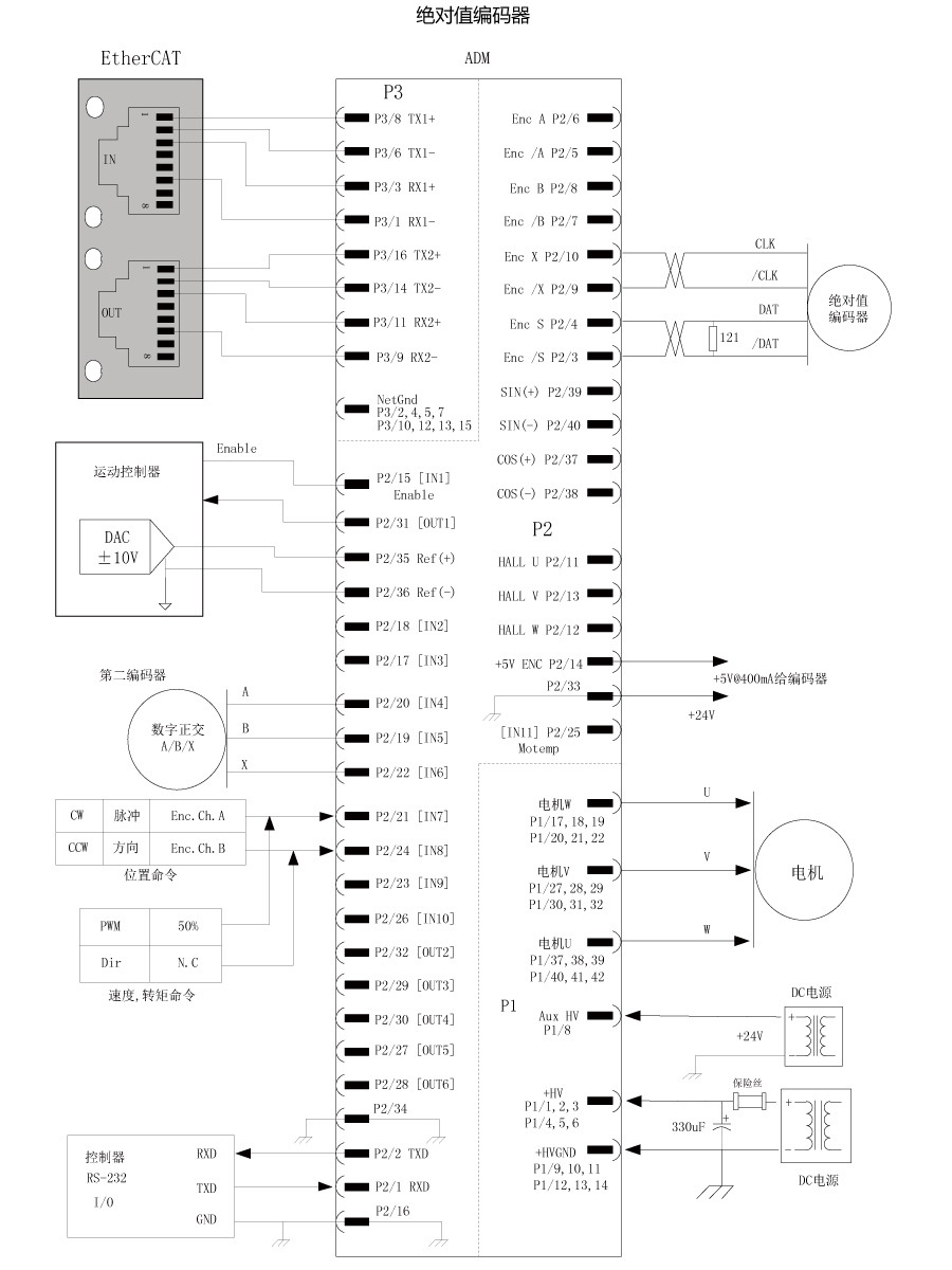 | 反馈 | 正交增量编码器,最大速率5M line/s(4倍频后20M) 数字霍尔(U,V,W,120°电气相位差) 模拟量正余弦编码器(Sin/Cos)可选 第 2 编码器输入或输出(全闭环控制) 松下增量编码器( A 格式) SSI, EnDat,Absolute A 多摩川与松下绝对值编码器 A 尼康与三洋绝对值编码器 A |