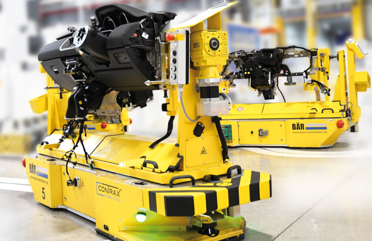 高度灵活的准时制(JIT)装配线专为多种车型而设计。最初计划的刚性输送机技术上的传输回路正在被42个高效自动导引车系统(AGV)所取代。