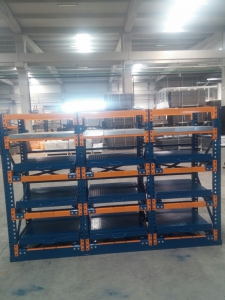 Roll Out Racks 是大负载的理想选择;它用于存储各种材料,包括注塑模具、气缸和圆形工具、原材料、发动机和机械零件以及汽车零件。