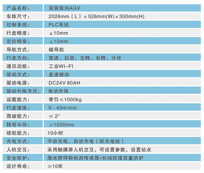 双驱双向潜伏式AGV技术参数: