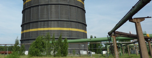 煤气表 - 用于储存转炉气体的盘式气罐。网络组织的气体管理。