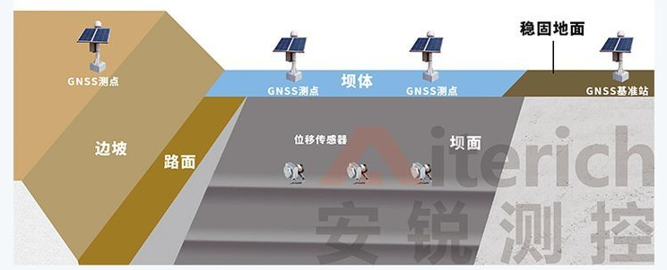 针对坝体表面位移变化情况,可通过在大坝断面、地基、合拢断地质条件复杂处等关键位置安装位移传感器进行监测,需注意测点和基点的结构必须牢固可靠,不易变形。