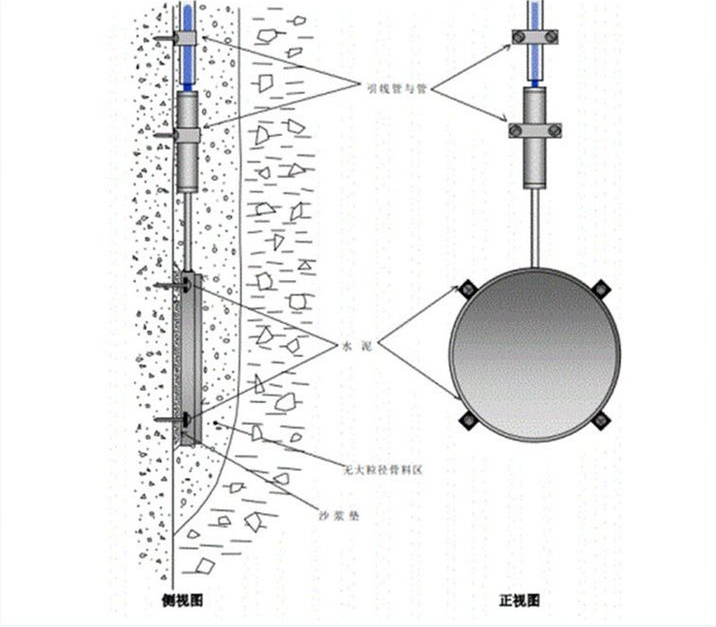 监测点需要和孔隙水压力装在同一断面,了解坝体受力情况和土与混凝土建筑物的作用压力大小。