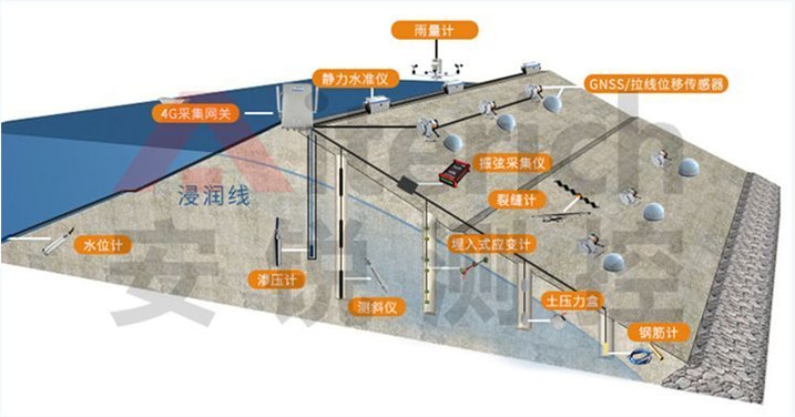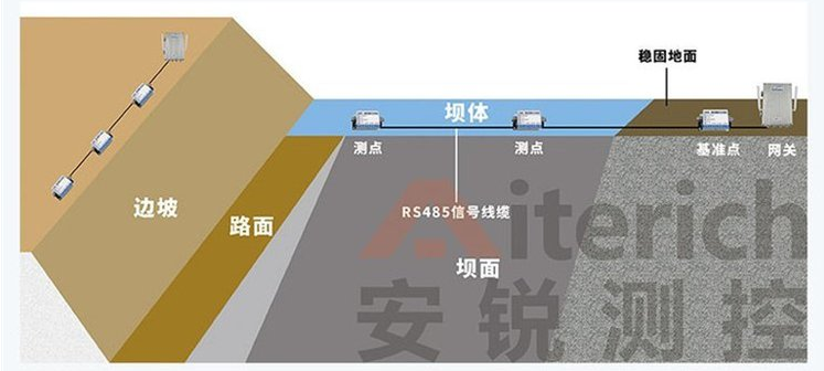 针对水库大坝的坝体内部位移,本方案通过在原河床、和垄断、坝体结构及施工薄弱处安装自动化测斜仪来监测坝体内部的位移情况。