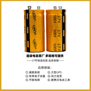超级电容2.7V 500F 3570 可瞬间释放270A的电流,可应用在大部分的电路功率补偿电源,在2.3V工作电压环境下可在85℃环境使用,可储存0.51wh能量,型引出方式