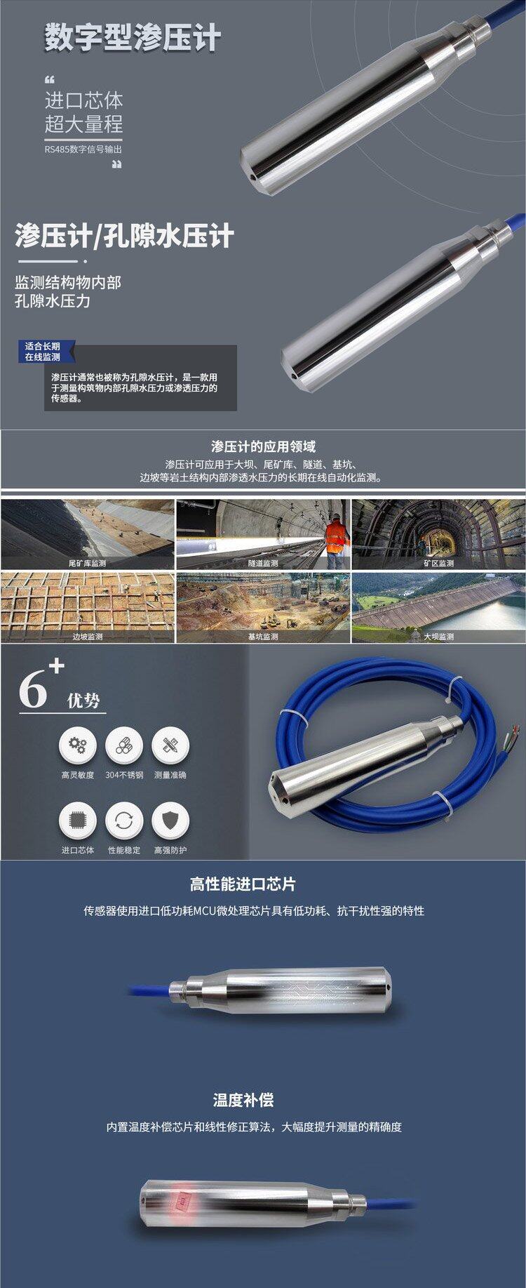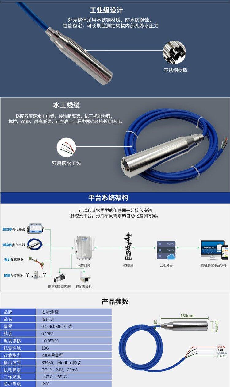 数字孔隙水压力计RS485高精度渗压计自动化压力监测设备详情说明: