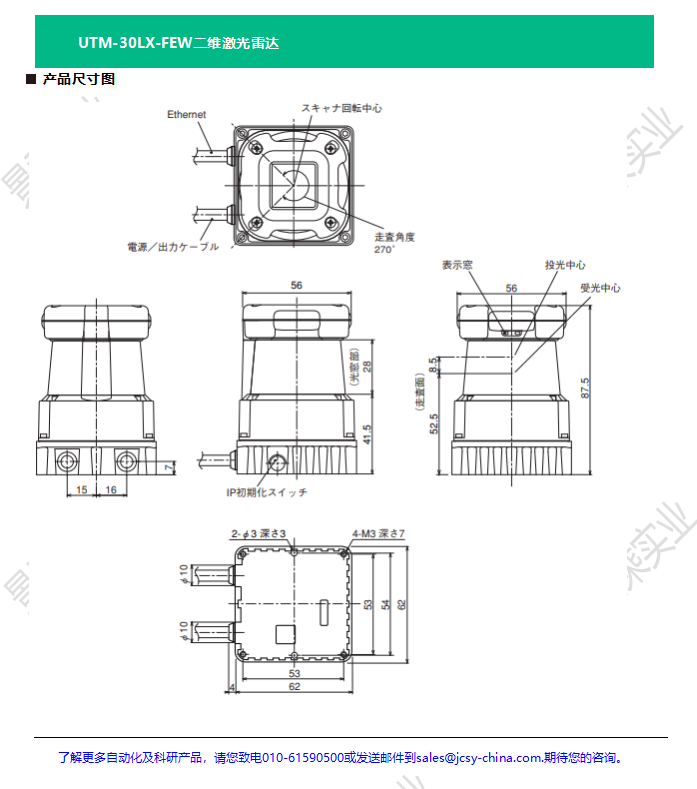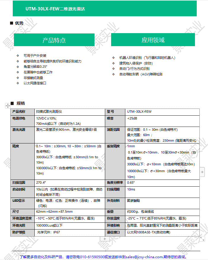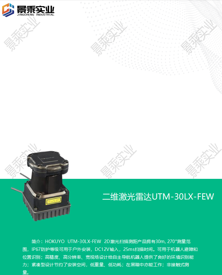 HOKUYO北阳 环境识别 AGV障碍检测 二维激光雷达UTM-30LX-FEW