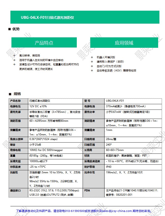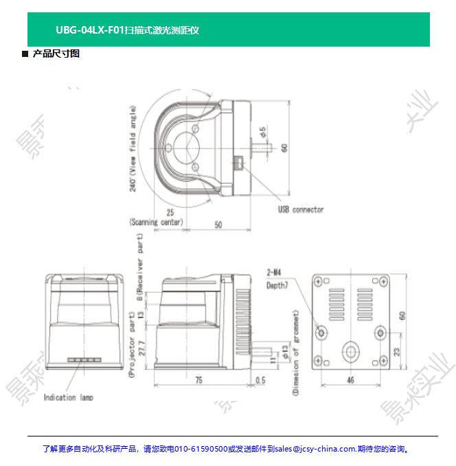 HOKUYO北阳 环境识别 障碍物检测 扫描式激光测距仪 UBG-04LX-F01