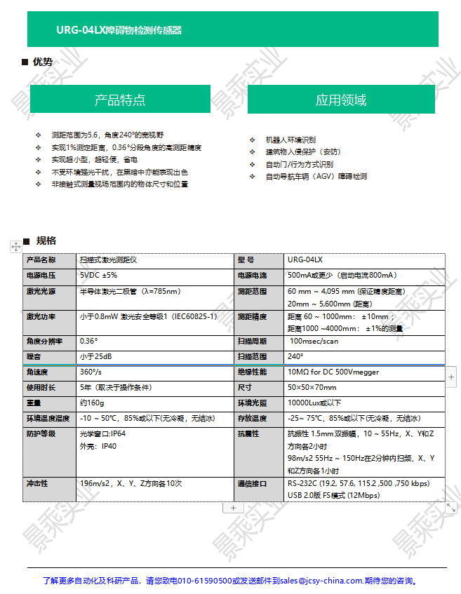 HOKUYO北阳 环境识别 AGV障碍检测 扫描式激光测距仪URG-04LX