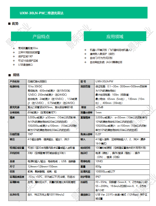 HOKUYO北阳 环境识别 AGV障碍检测 障碍物检测传感器 UXM-30LN-PW