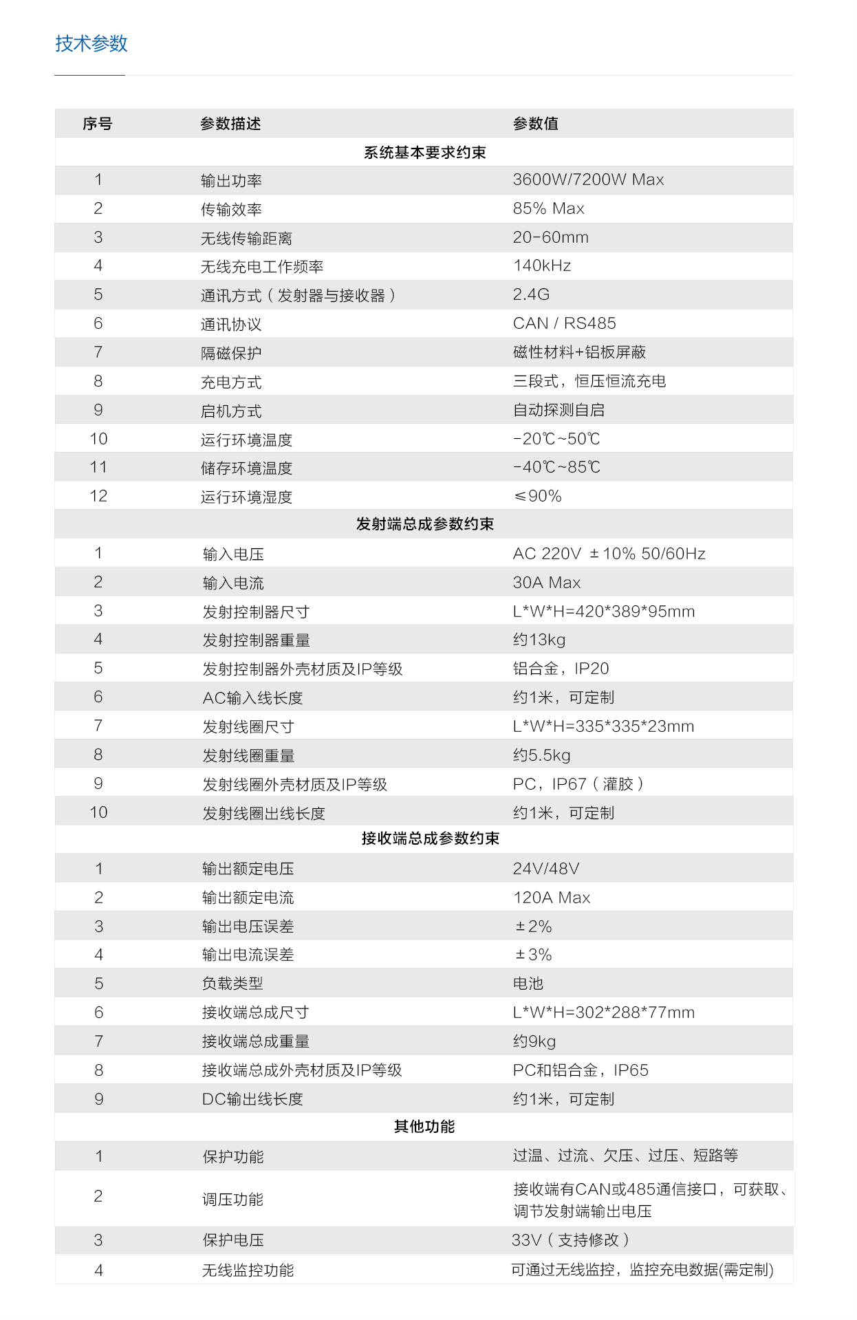 赫兹创新HzWP-LC360&LC720-A120型无线充电电源系统是一款基于磁耦合谐振式技术的无线充电电源设备,可以为直流用电设备提供非接触式充供电,用电设备可以是使用锂电池、磷酸铁锂、铅酸电池等装置,也可以是阻性负载等。