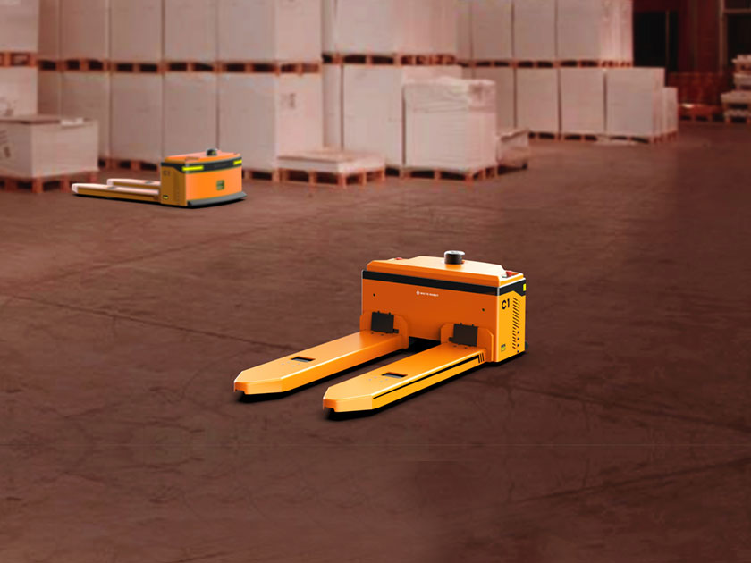 C1型托盘搬运式AGV用于堆栈托盘类货物的物流周转,由电动升降系统、差速驱动系统、智能控制系统、导航系统、通信系统、警示系统、操作系统和动力电源组成,是集电动升降和智能控制的可编程无线调度的自动导引小车;