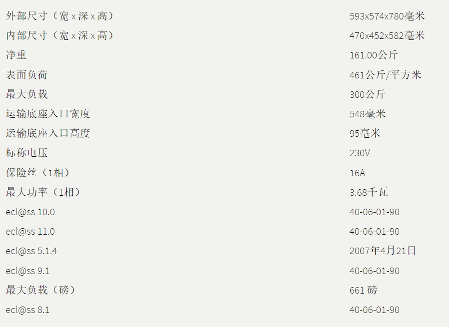 内部尺寸:宽 x 深 x 高(毫米)470 x 452 x 582