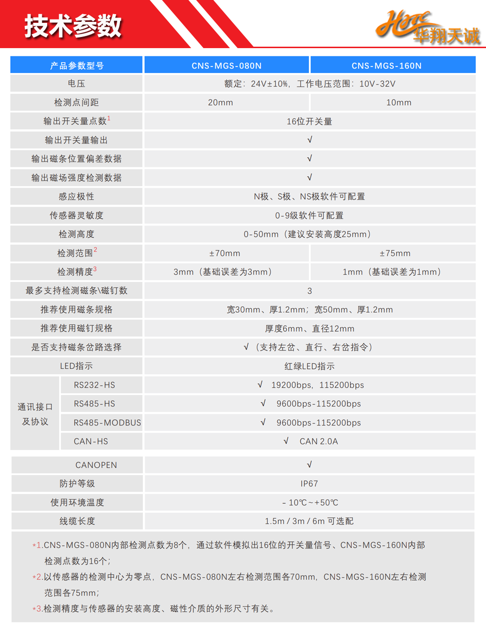 检测高度:10~50mm(使用 CNS-MS-30N 导航磁条)