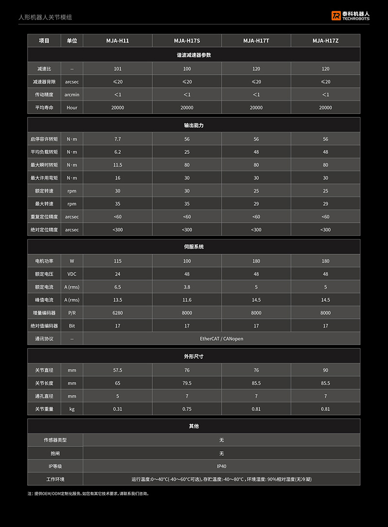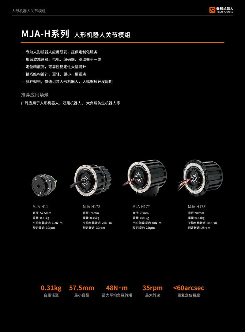 • 专为轻量型人形机器人手臂应用研发,提供定制化服务