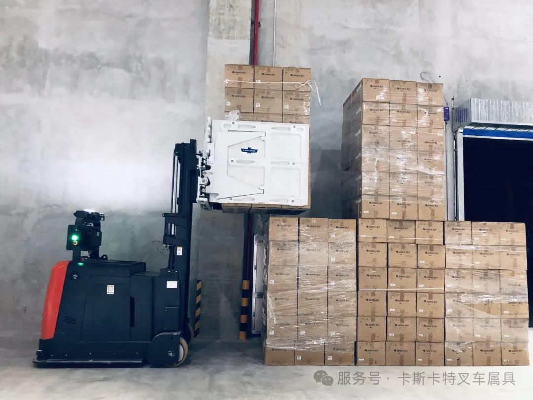 除纸箱外,调距叉、单双托盘叉和推拉器等产品也可应用于家电行业的作业,卡斯卡特与您紧密合作,设计出与您 AGV 车辆高度集成的解决方案。