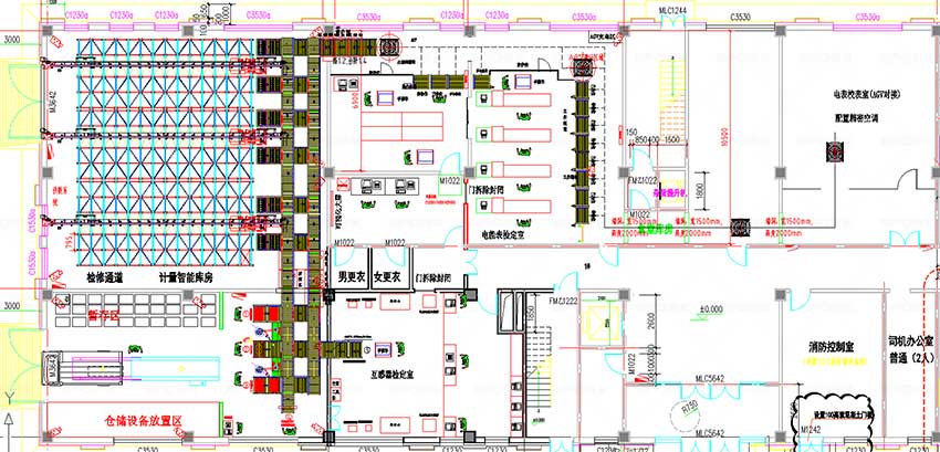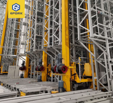 本项目设计智能仓储一座,布置3台双伸位堆垛机巷道,10排,14列,11层的自动化立体货架,库位周装箱码垛存储。