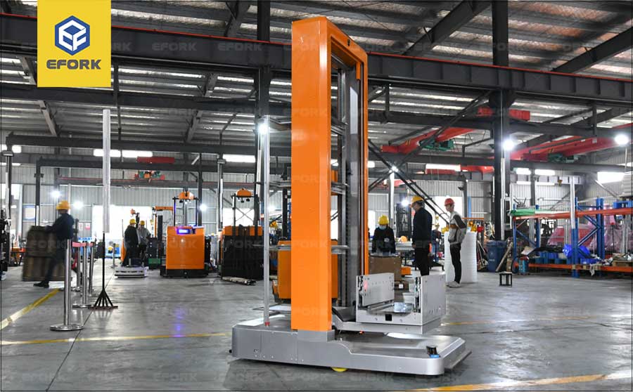 车体紧凑车体结构紧凑,宽度小,举升高,侧向插取货物,堆垛通道小,提升仓库的库容量;多货箱搬运可同时容纳并搬运多个料箱,能快速转运货物,有效提高仓库使用率;路径变更灵活采用二维码加惯导的符合导航模式,定位精度高。地图虚拟路径,满足高柔性生产。路径和站点可以快速修改,能适应仓库和产线变动; .安全高效采用安全触边加激光避障双重避障措施,有效保证搬运过程中的安全性。