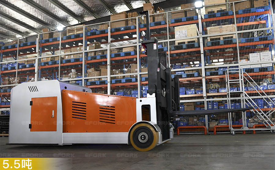 3.5吨重载平衡重式叉车AGV是由一个驱动/转向的前轮和2个定向轮的结构。它适用于运输各种托盘,箱或纸卷等搬运物料,并能够满足不同尺寸的负载单位。