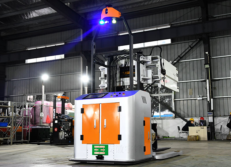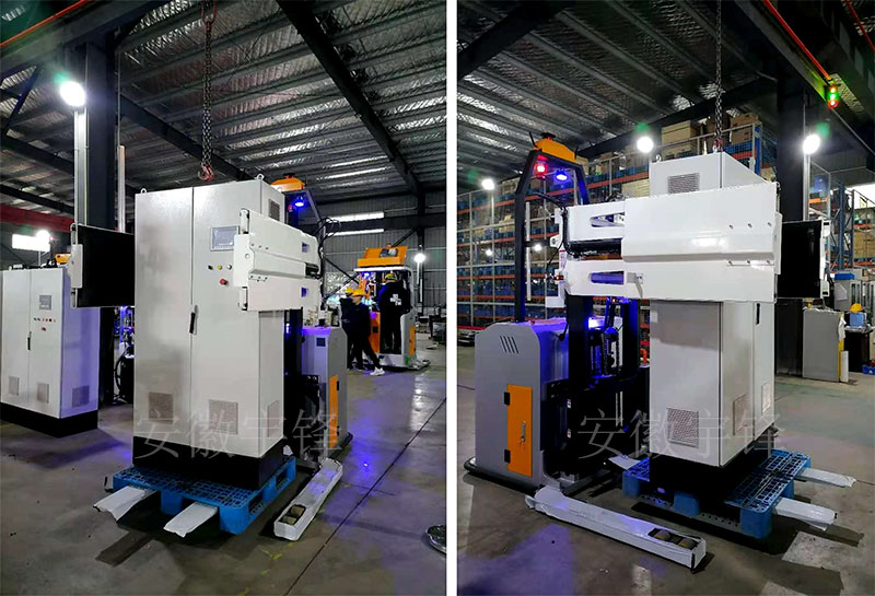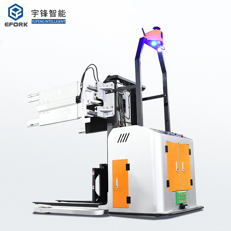 因用户现场作业环境复杂,货物体积大运行易失稳,托盘尺寸不规则等项目难点,从而对AGV的可靠性、安全性、稳定性等特性要求更高,宇锋智能公司技术中心在标准叉车的车体基础上加装了定制化抱夹属具,研制出一款双坐标平衡重AGV叉车,承载货物2000KG,配置特定的前端可伸缩抱夹属具,严密保护货物倾翻,搭配侧移器实现位置纠正,解决货物堆垛过程中的误差问题,搭载多线激光导航系统,优化AGV的行走路径,提升货叉复合功能下的二次定位精度,实现复杂场景及不规则货物等特点下的智能搬运解决方案。