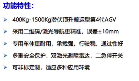 潜伏顶升搬运型AGV,通过潜伏至物料车下方,通过顶升的方式抬起整