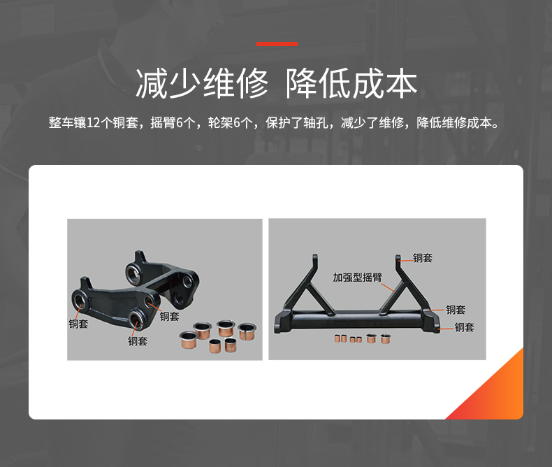 所有的转向轴处都加以润滑,确保良好的操作性和轻松的转向;复合套和镀铬轴确保了安静平稳的起升和行走,延长使用寿命