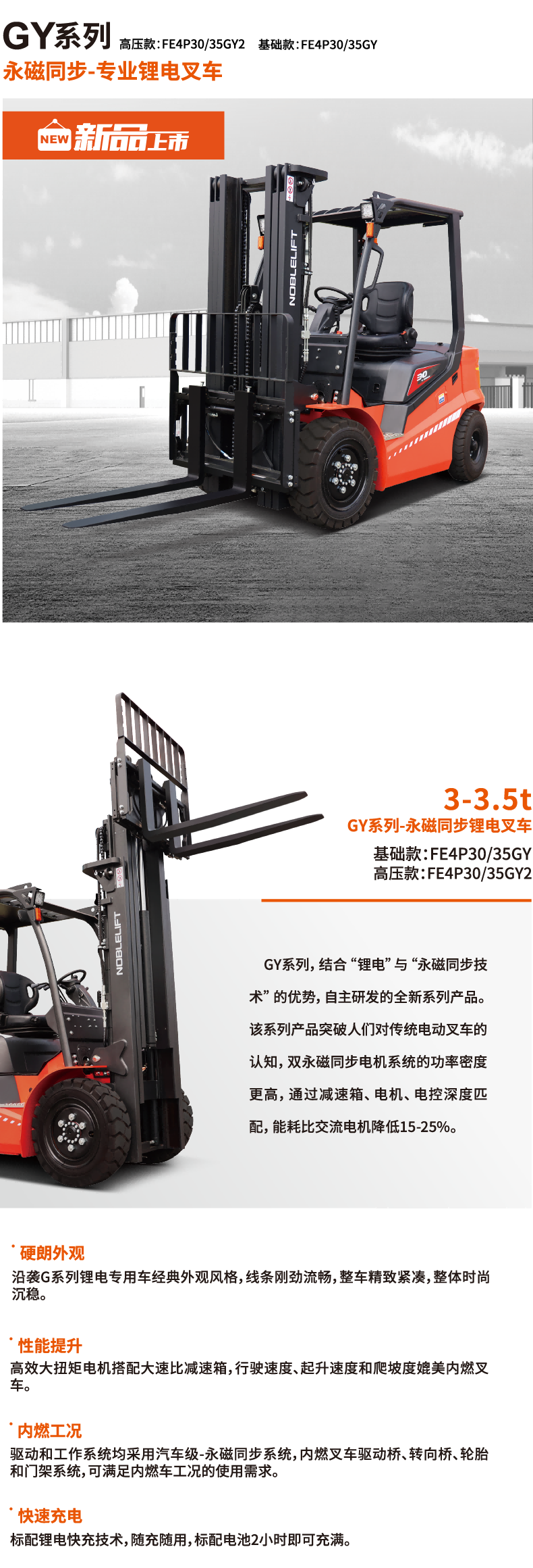诺力 FE4P30-35GY 3.0/3.5吨四支点前驱平衡重式电动叉车