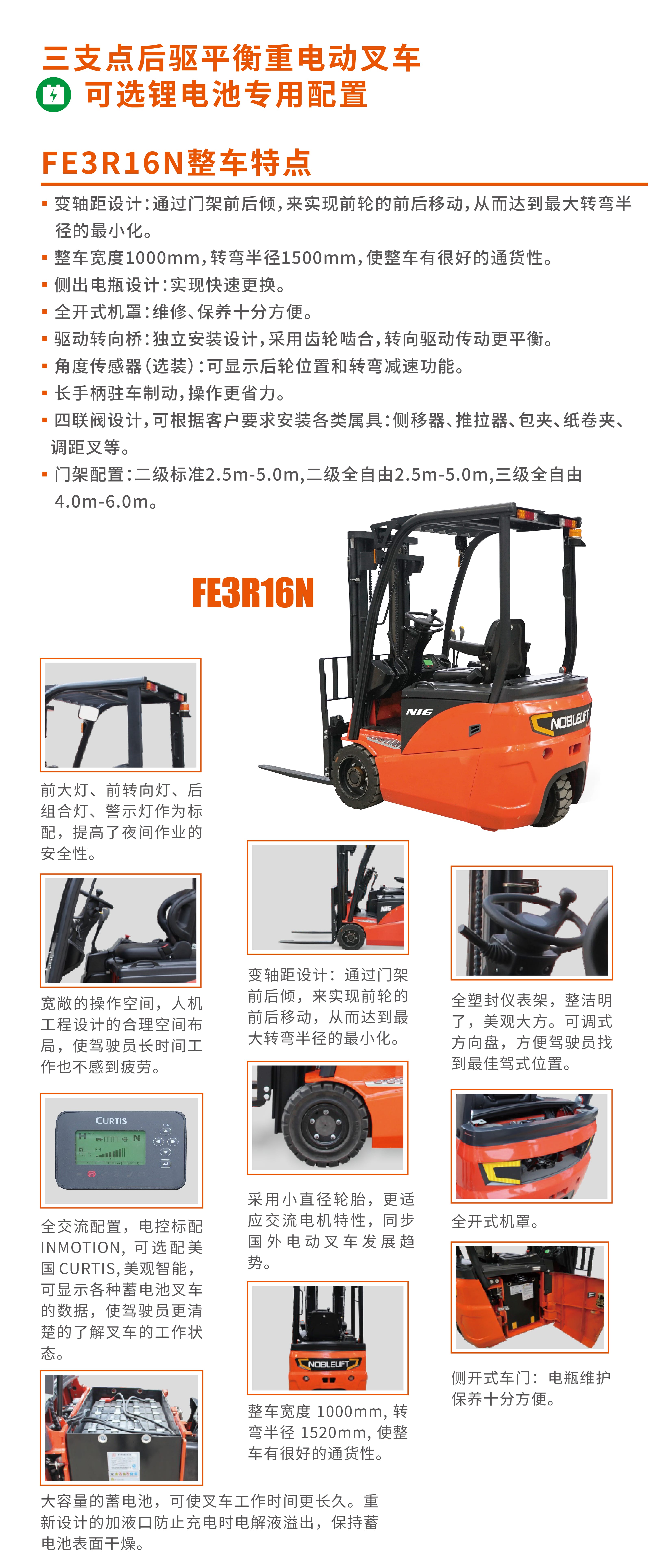诺力 FE3R16N 1.6吨三支点后驱平衡重式电动叉车